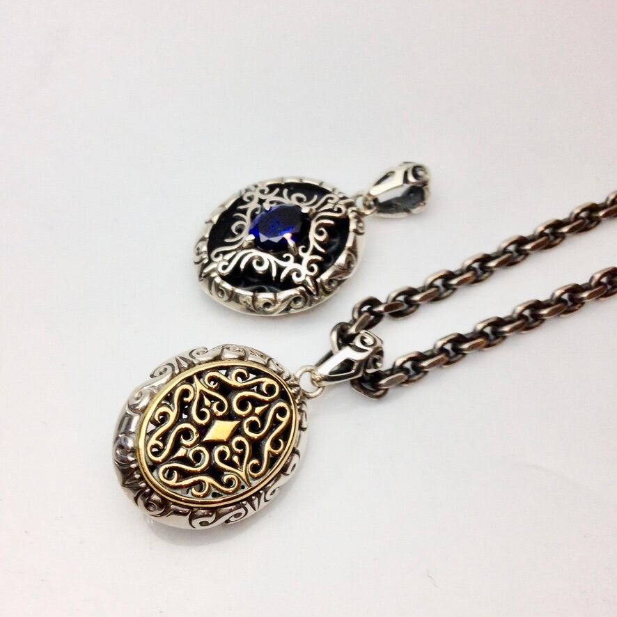 楕円リバーシブルペンダント(シルバー&真鍮)